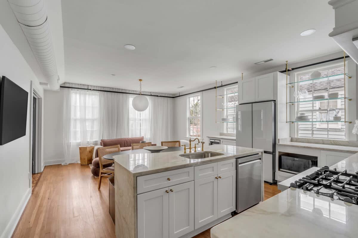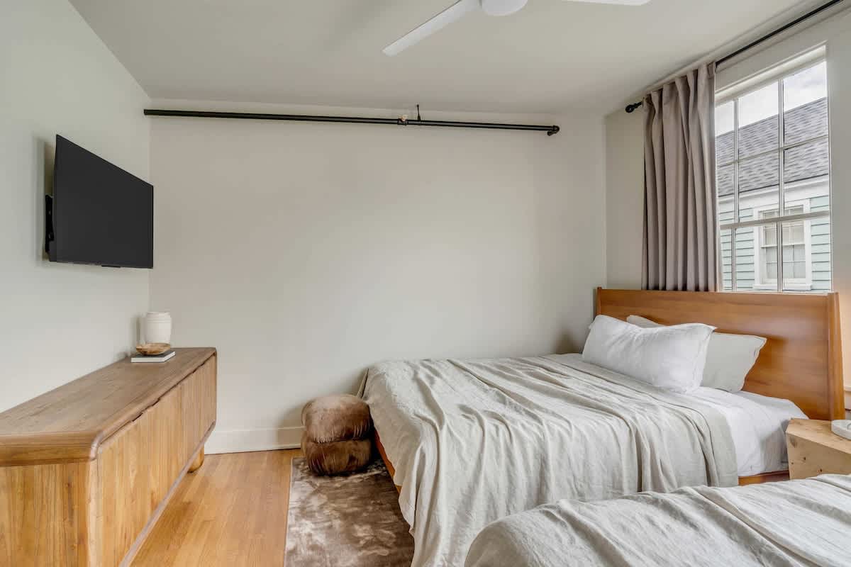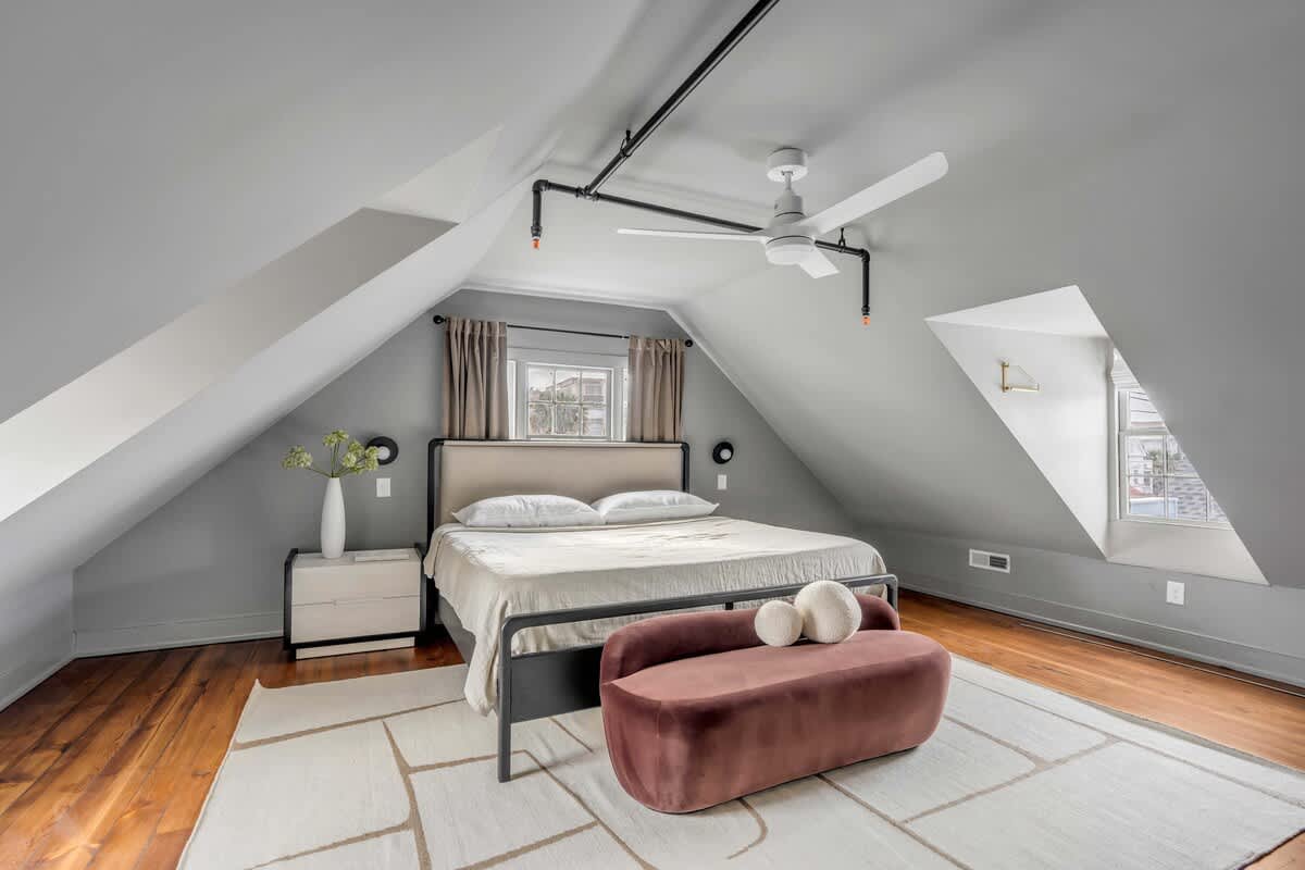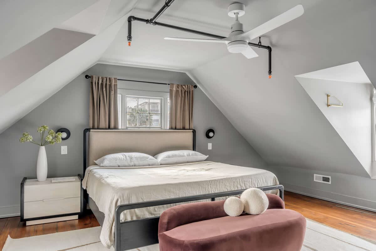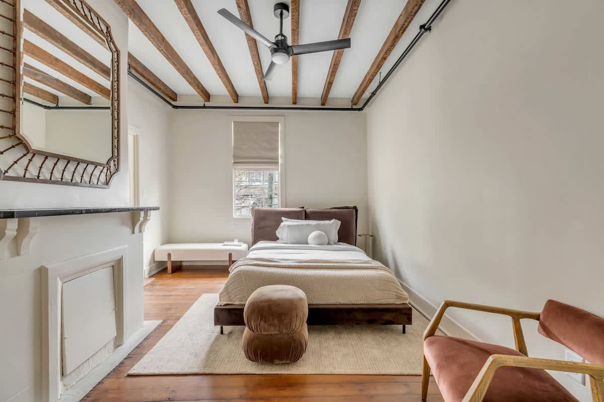 Welcome to Emerson Square Charleston – a grand, professionally designed residence where historic character meets modern luxury. Encompassing the entire second and third floors of a meticulously restored historic building, this expansive five-bedroom retreat is ideal for large groups and families seeking an elevated stay in the heart of downtown.