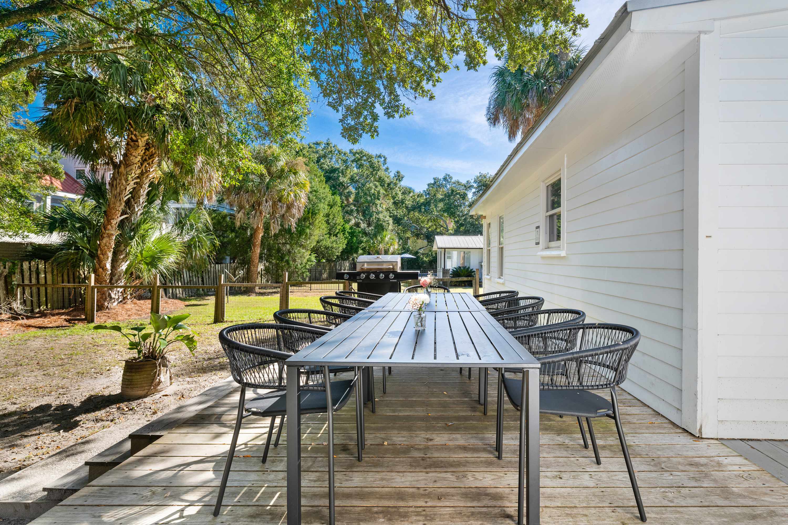 Escape to the Jessamine, a bright and airy beach house just minutes from the shore in Isle of Palms, South Carolina. This charming home offers fun for everyone, with a pool table, TV room stocked with board games, and a stunning patio complete with a grill and outdoor dining. Enjoy spacious bedrooms, a full kitchen, and a dining table perfect for meals. With its prime location and fantastic amenities, Jessamine is the ideal spot for a memorable getaway. Cruise all of IOP on the 5 supplied beach cruiser bikes!