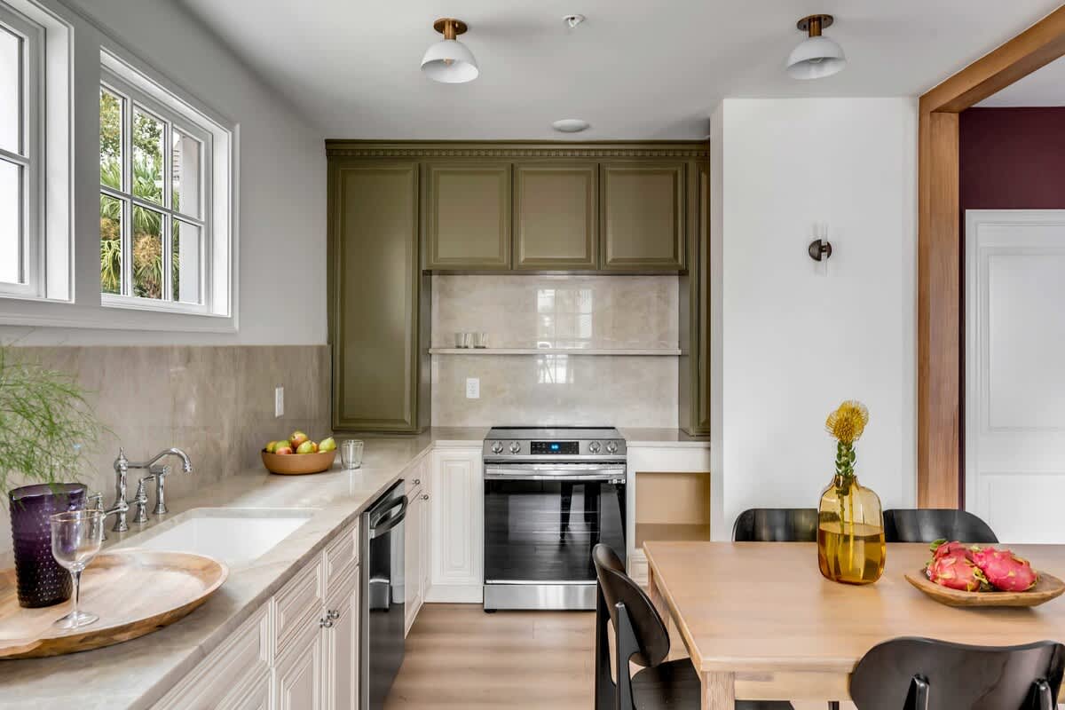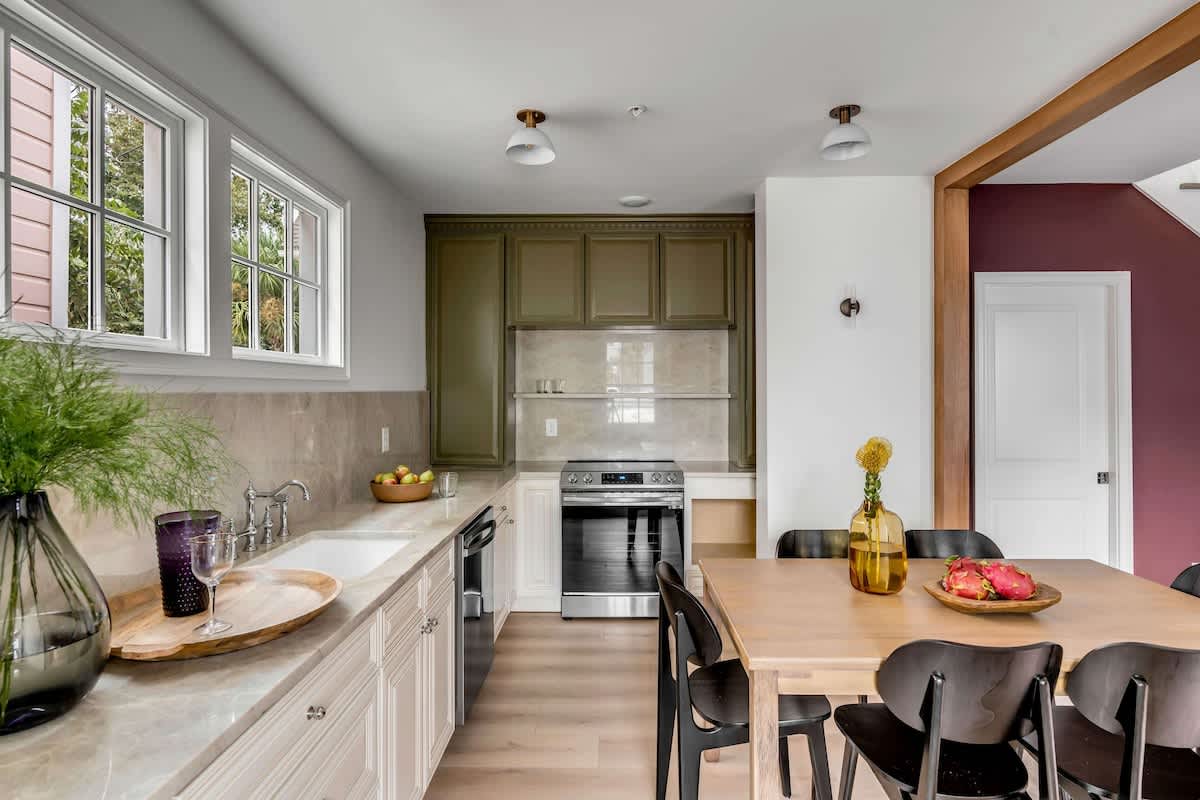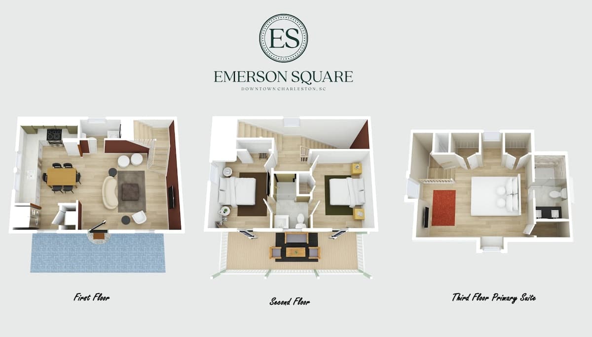 Brand new in the heart of downtown Charleston, this professionally designed private residence offers a warm, elevated aesthetic with thoughtfully curated details throughout. The grand third-floor primary suite features a custom-built king bed and a spacious private bath, creating a true retreat. Two additional queen bedrooms provide comfort and privacy for guests, while the covered second-floor piazza offers the perfect spot to relax and enjoy Charleston’s beautiful weather.