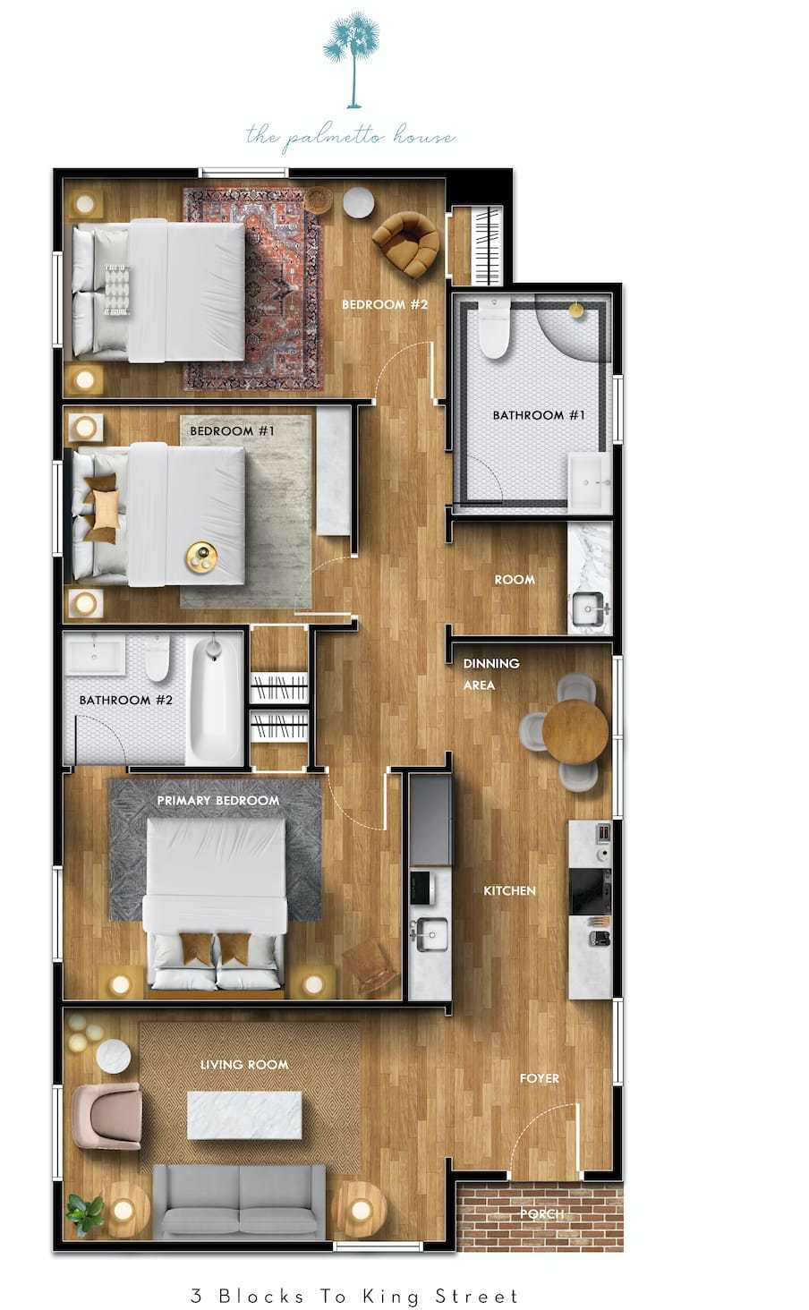 Escape to the heart of Charleston and experience the perfect blend of comfort, convenience, and style at The Ruby. This charming 3-bedroom, 2-bath ground-floor apartment offers the ideal home base in downtown Charleston, just three blocks from the iconic King Street.