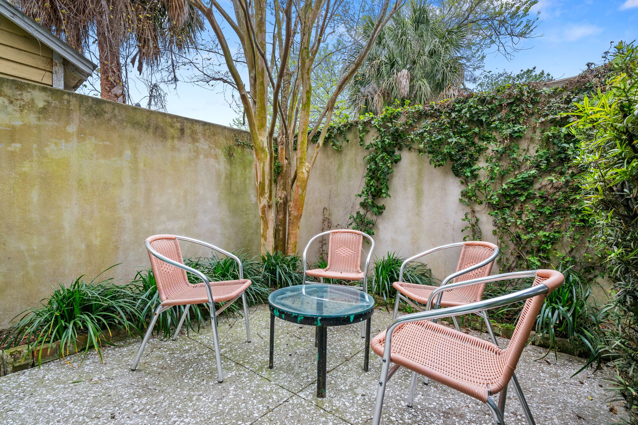* The private side porch with seating.