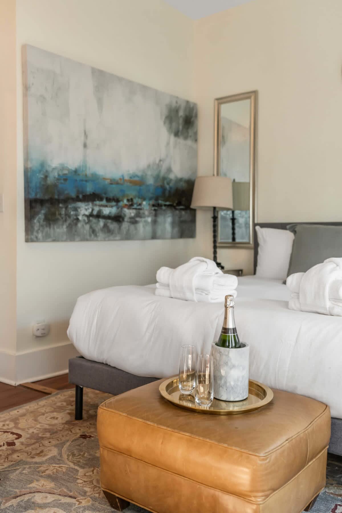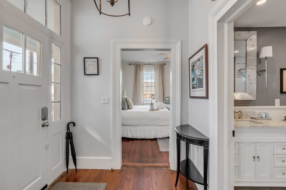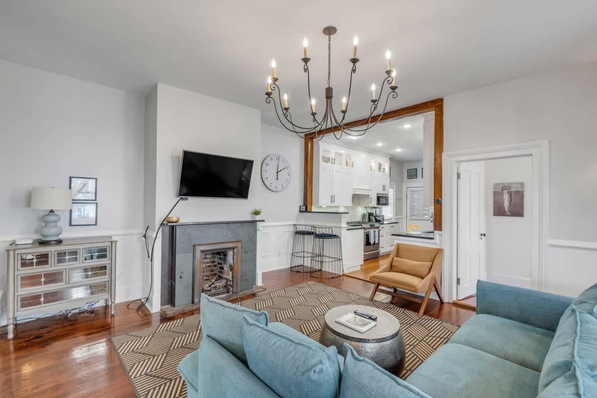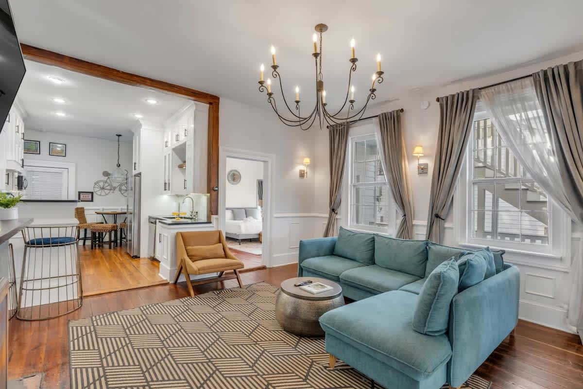 Step into timeless charm and modern comfort at The Grand | Suite. This beautifully updated 2-bedroom apartment is set within a historic Charleston home and features two spacious bedrooms, each with a king-size bed. Blending historic character with contemporary amenities, this inviting residence offers a memorable stay in the heart of the city. The home also includes a fully equipped kitchen, perfect for preparing meals and enjoying the flavors of the Lowcountry during your stay.