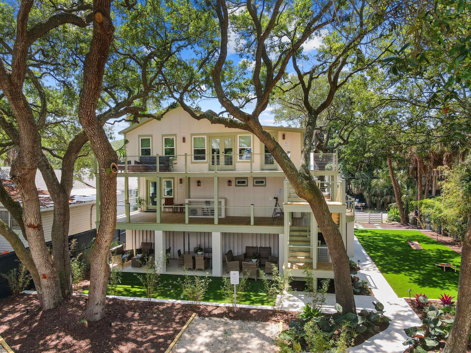 - Shared outdoor common areas with comfortable seating and lawn games.