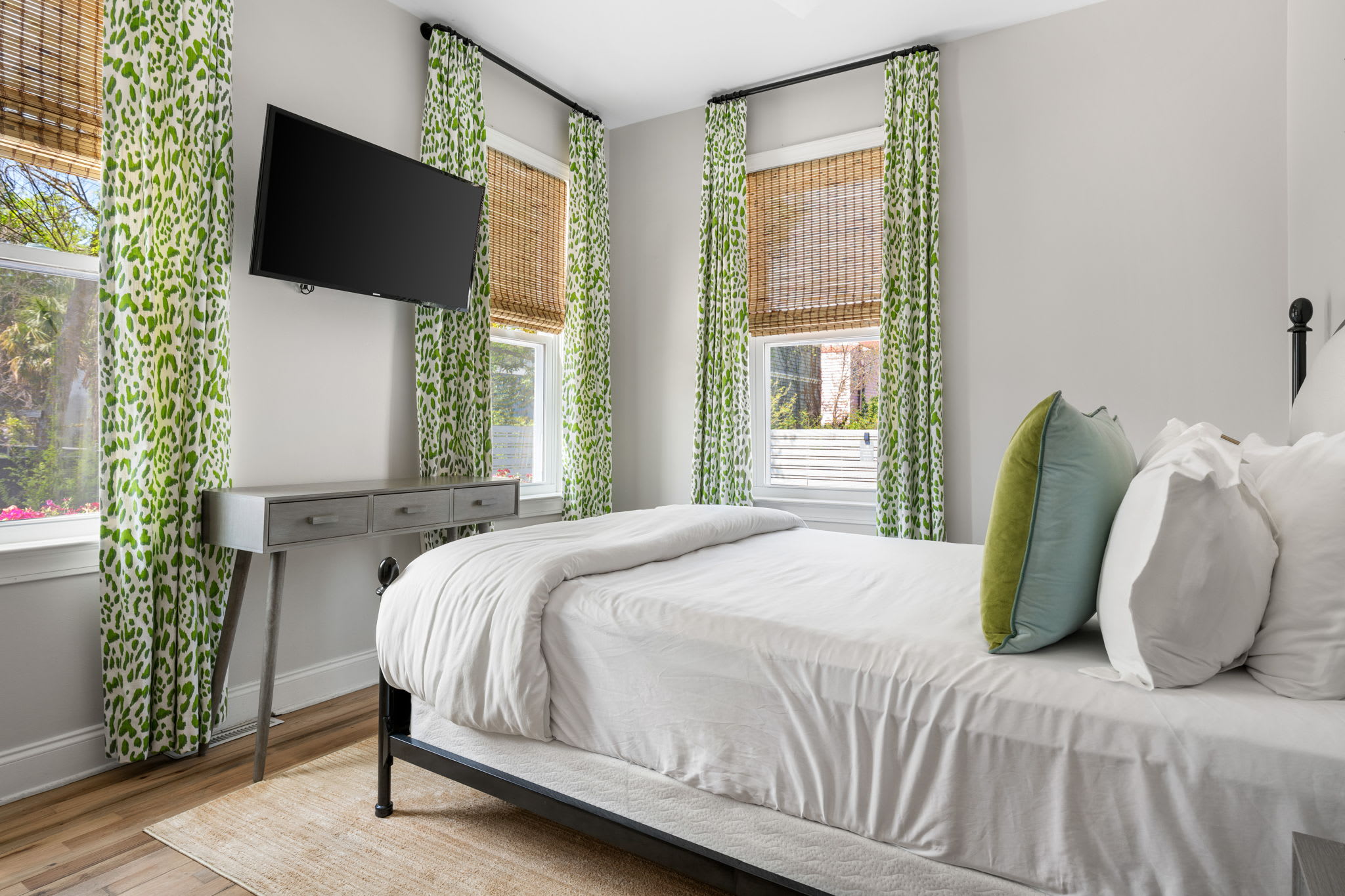 Welcome to this upscale 3-bedroom, 3-bathroom downstairs suite, part of The Inns collection, professionally designed and newly renovated for elevated comfort in downtown Charleston. Located just two blocks from King Street (Walk Score 95), this duplex blends convenient access with refined style.