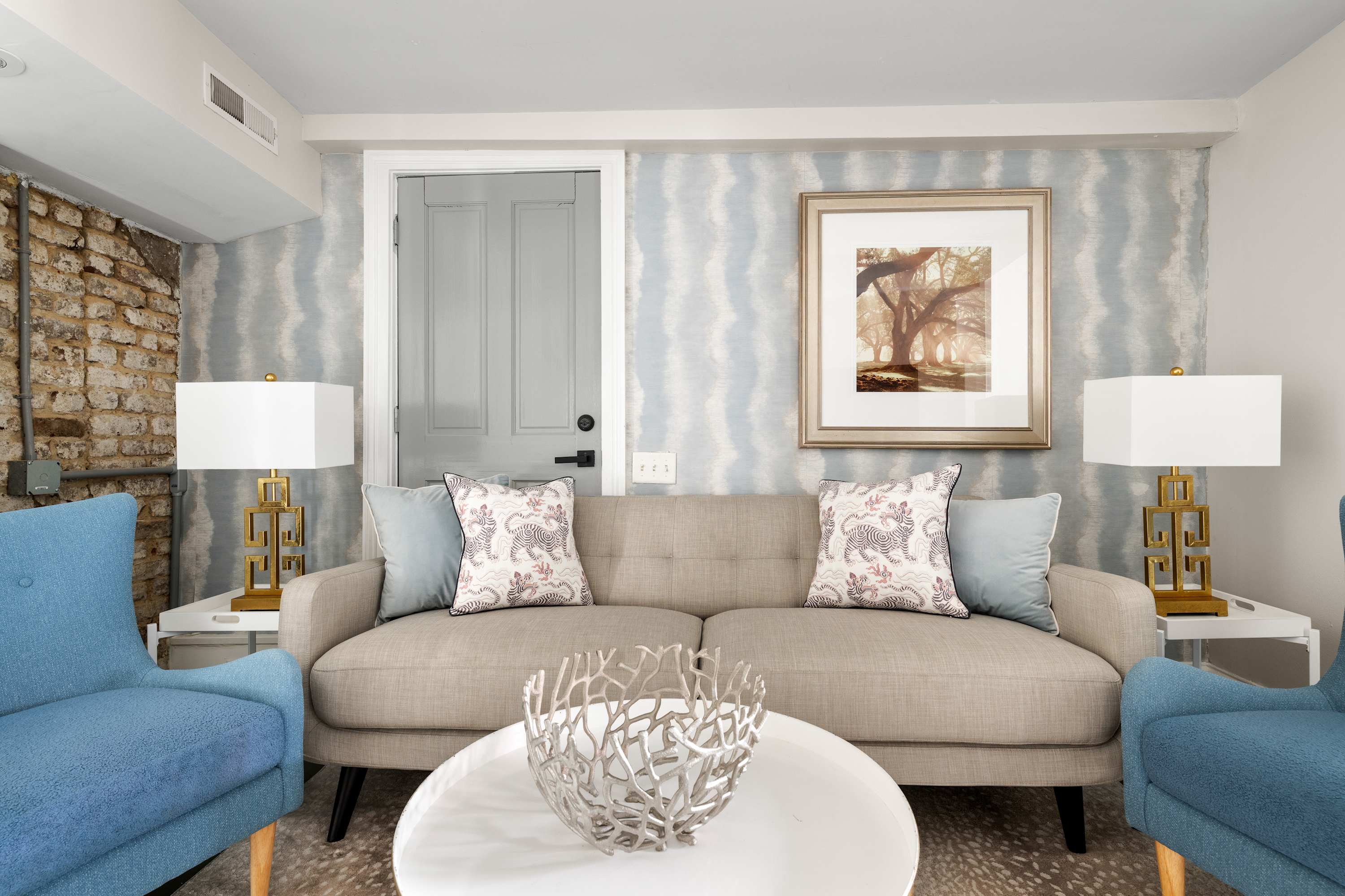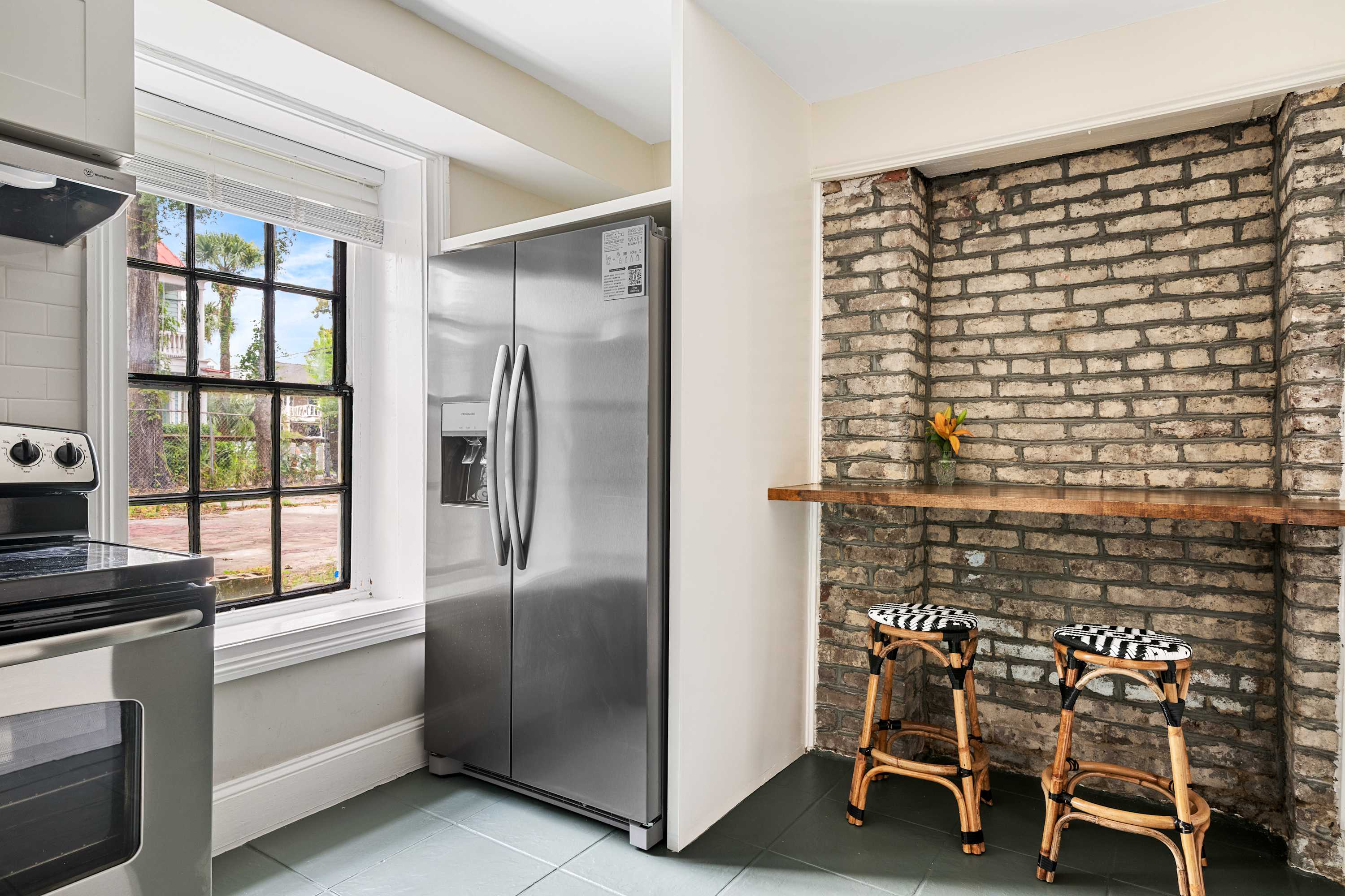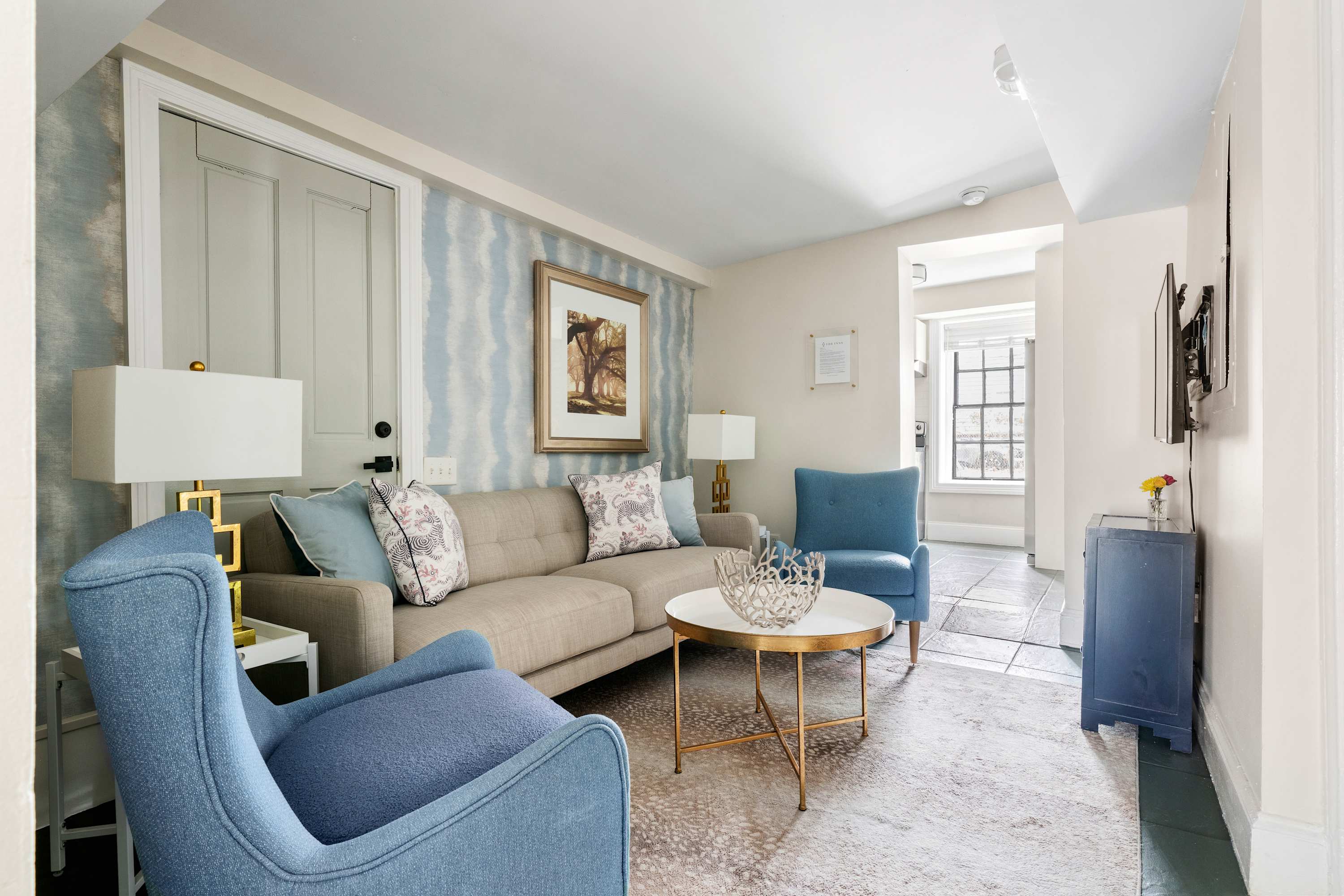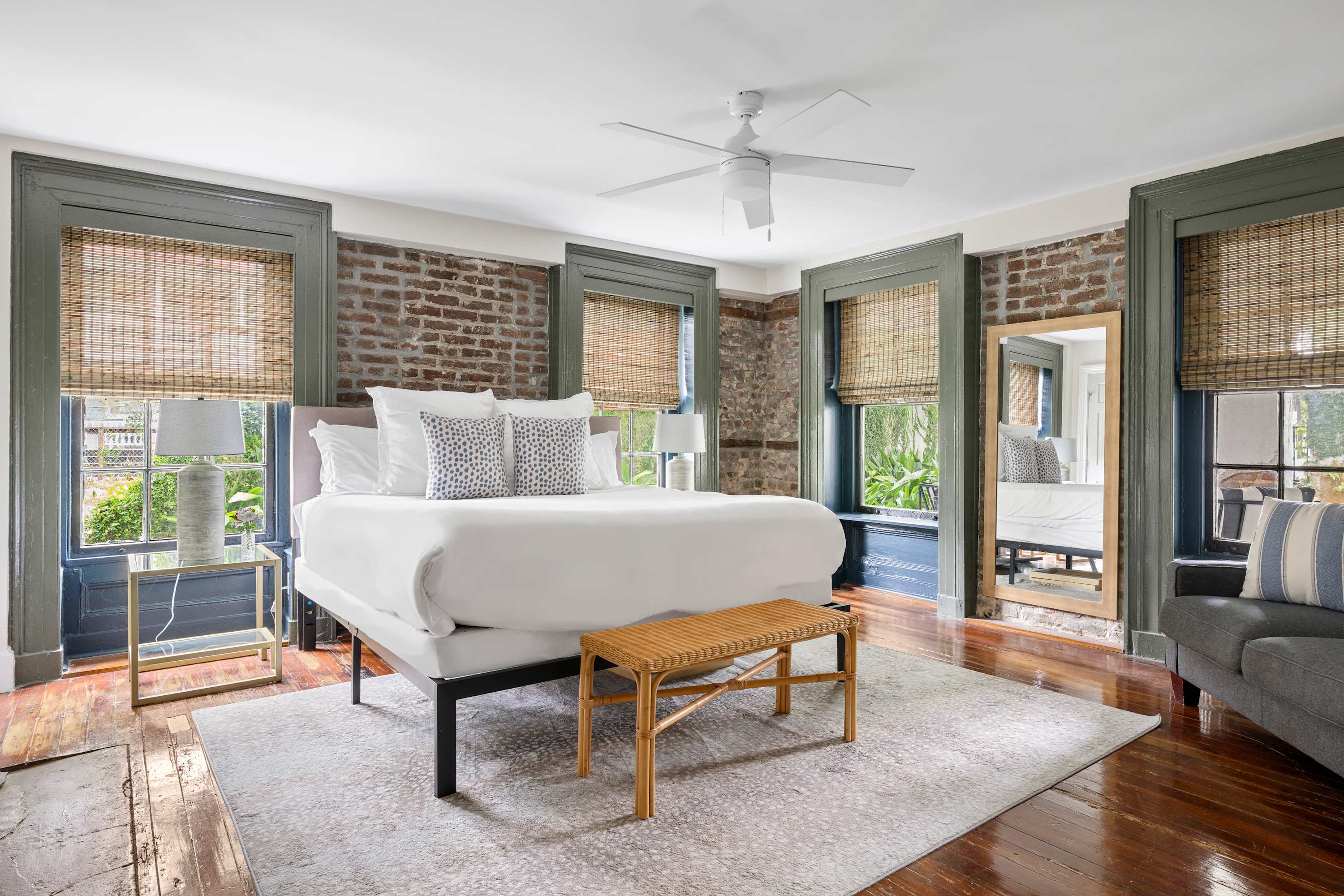 The Inns embody timeless Charleston charm, where grand verandas draped in Spanish moss offer a serene glimpse into the city’s historic elegance and effortless Southern luxury. Located on the first floor, this newly renovated 3-bedroom, 2-bath retreat offers the perfect balance of historic features and modern comfort. Soaring ceilings, thoughtfully designed interiors, and spacious common areas make it ideal for families or small groups.
