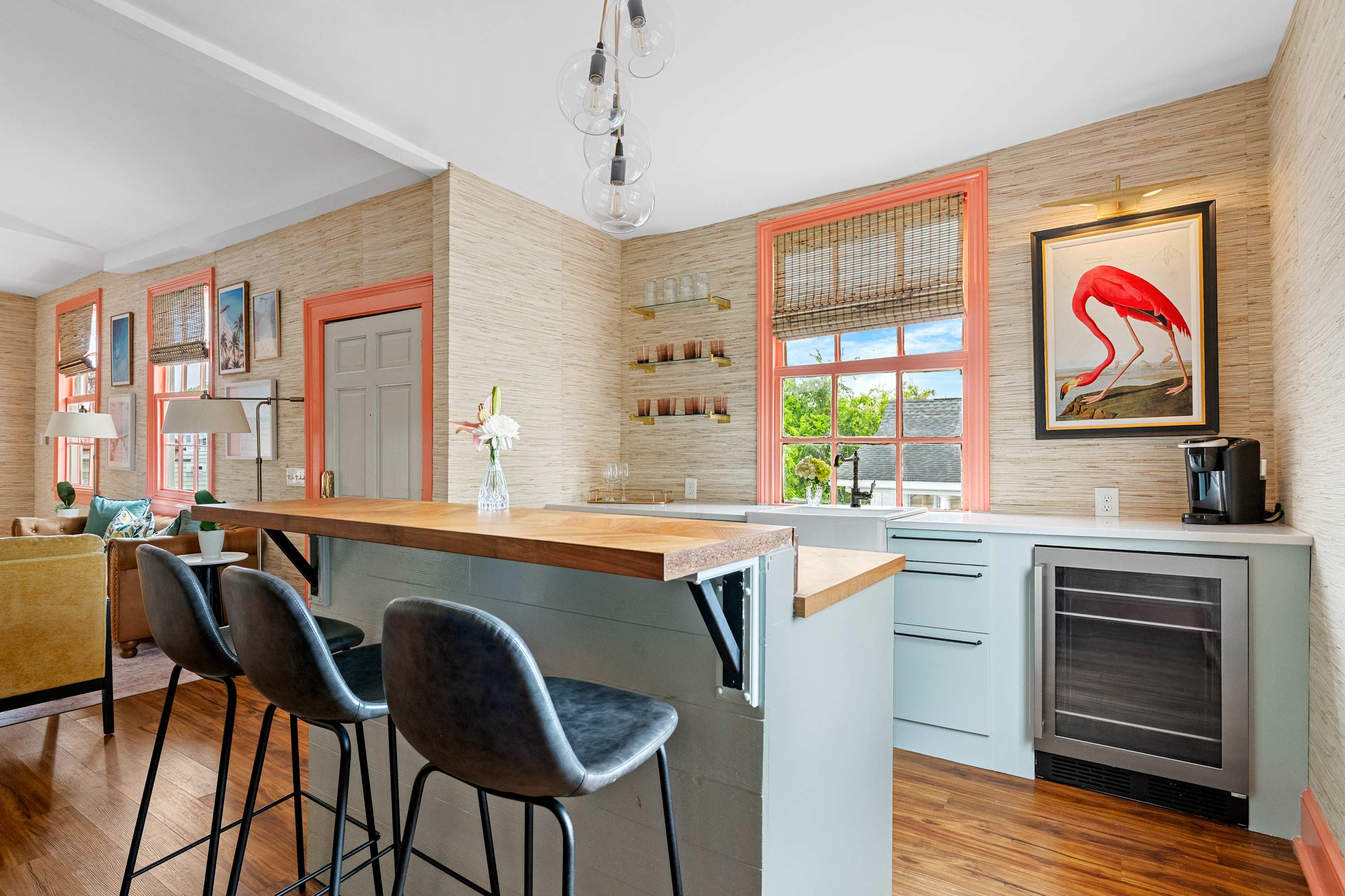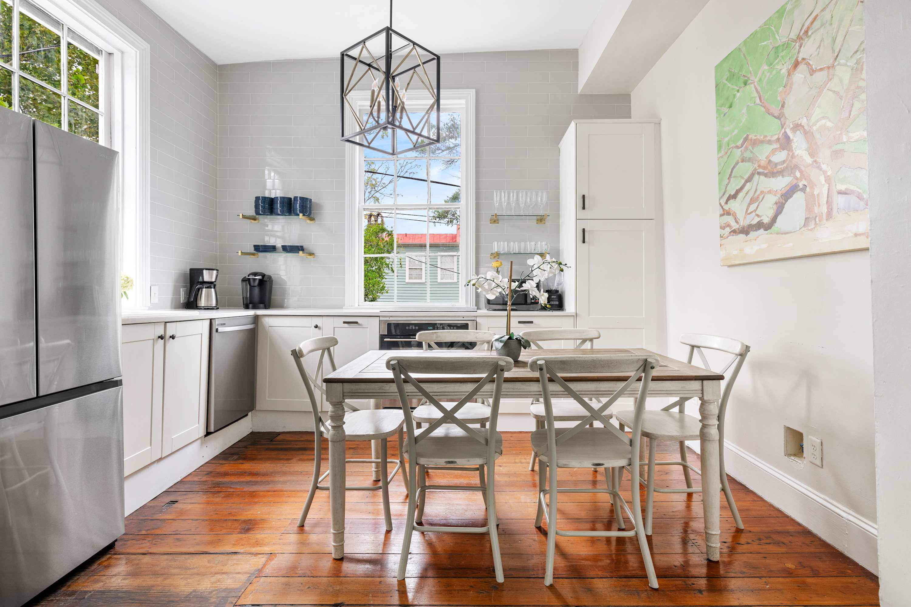 Surrounded by swaying Spanish moss in one of Charleston’s most picturesque neighborhoods, this stunning 7-bedroom, 5-bath home captures the essence of Southern grace with a modern twist. Thoughtfully renovated in September 2025, every detail from the fresh paint and plush linens to the new mattresses was designed for comfort and style. With expansive common areas and a secret third-floor speakeasy bar, it’s the ultimate destination for gatherings, celebrations, and unforgettable Lowcountry nights.